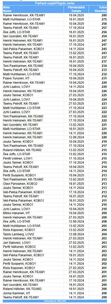 | 1 | KK-Team | 4767 | Paakkarinen Toni | 1335 |
